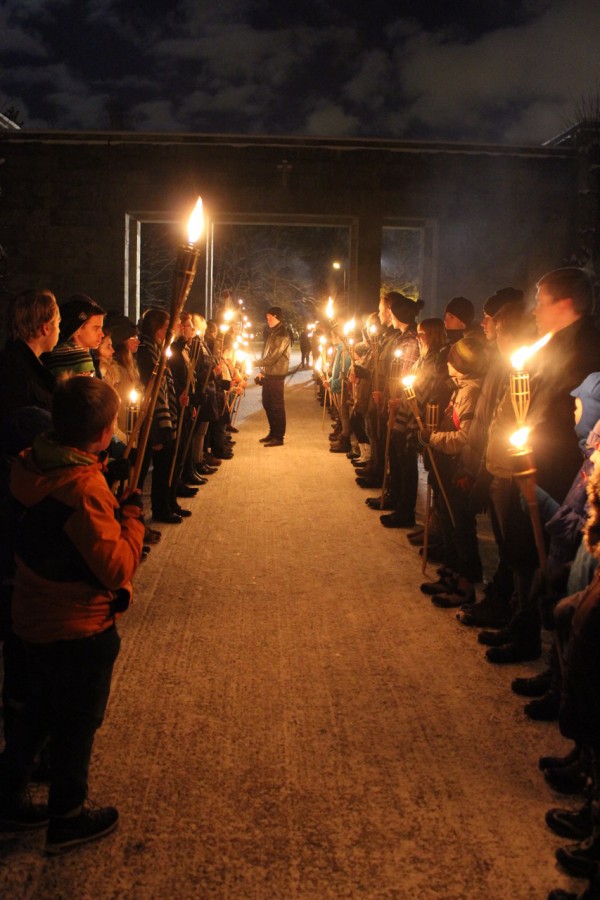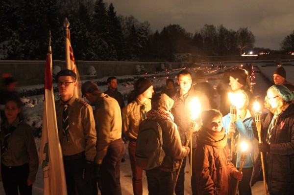 2016.gada 11. novembris. Rīgas 155.skautu vienības mazskauti un guntiņas,skauti un gaidas, dižskauti un dižgaidas,kā arī vadītāji dodas ikgadējā piemiņas lāpu gājienā Brāļu kapos.