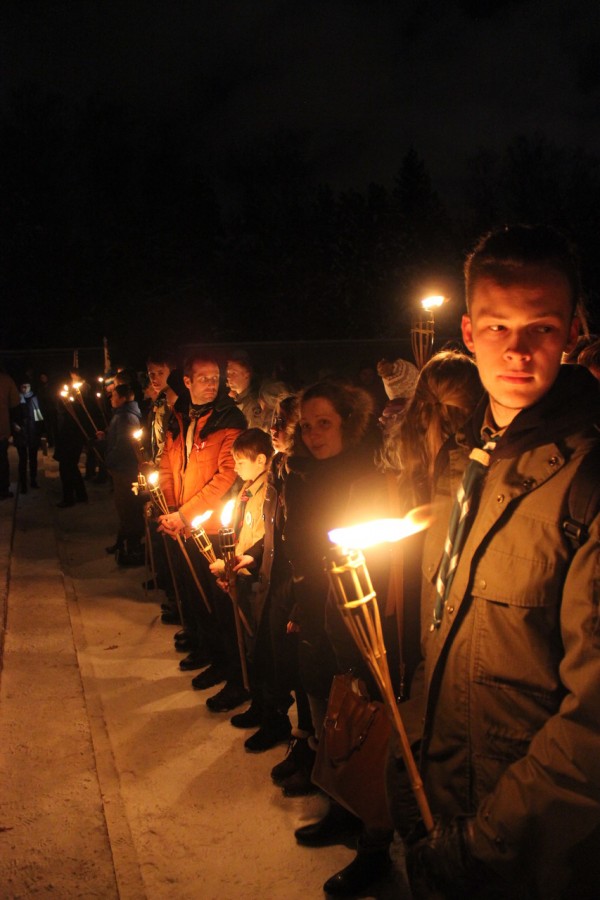 2016.gada 11. novembris. Rīgas 155.skautu vienības mazskauti un guntiņas,skauti un gaidas, dižskauti un dižgaidas,kā arī vadītāji dodas ikgadējā piemiņas lāpu gājienā Brāļu kapos.